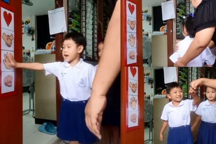 ไอเดียน่ารัก! ครูอนุบาลจัดกิจกรรมให้นร.เลือกวิธีทักทายก่อนเข้าห้องเรียน