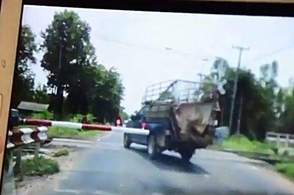 ฝรั่งงงคนไทยไม่กลัวตาย!ขับรถฝ่าแนวกั้นทางรถไฟ