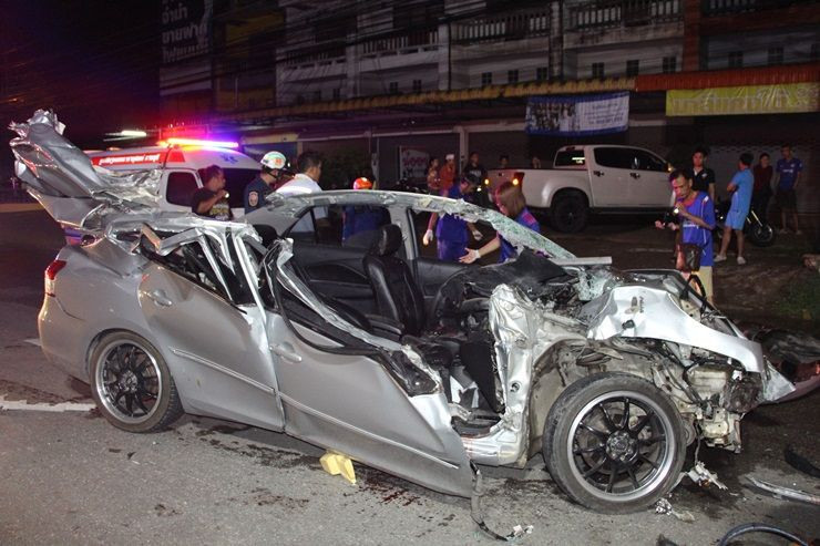 สลด!ทหารช่างซิ่งเก๋งชนท้ายสิบล้อบรรทุกไก่ดับคาที่ 3 สาหัสอีก 3 ราย