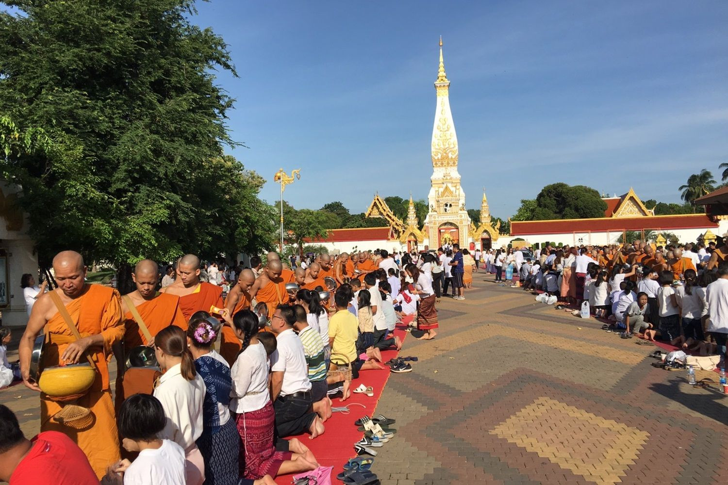 ไทย-ลาวร่วมทำบุญตักบาตรถวายองค์พระธาตุพนมวันอาสาฬหบูชา