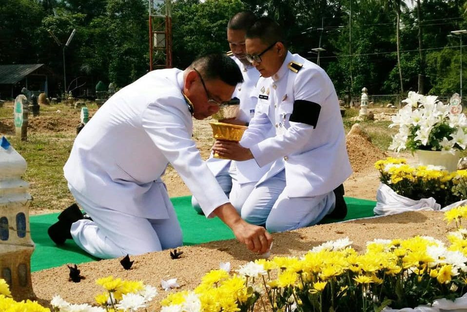 ปัตตานี-ในหลวงโปรดเกล้าฯ ผวจ.ปัตตานีเชิญดินพระราชทานฝังศพอส.ถูกคนร้ายประกบยิงเสียชีวิต