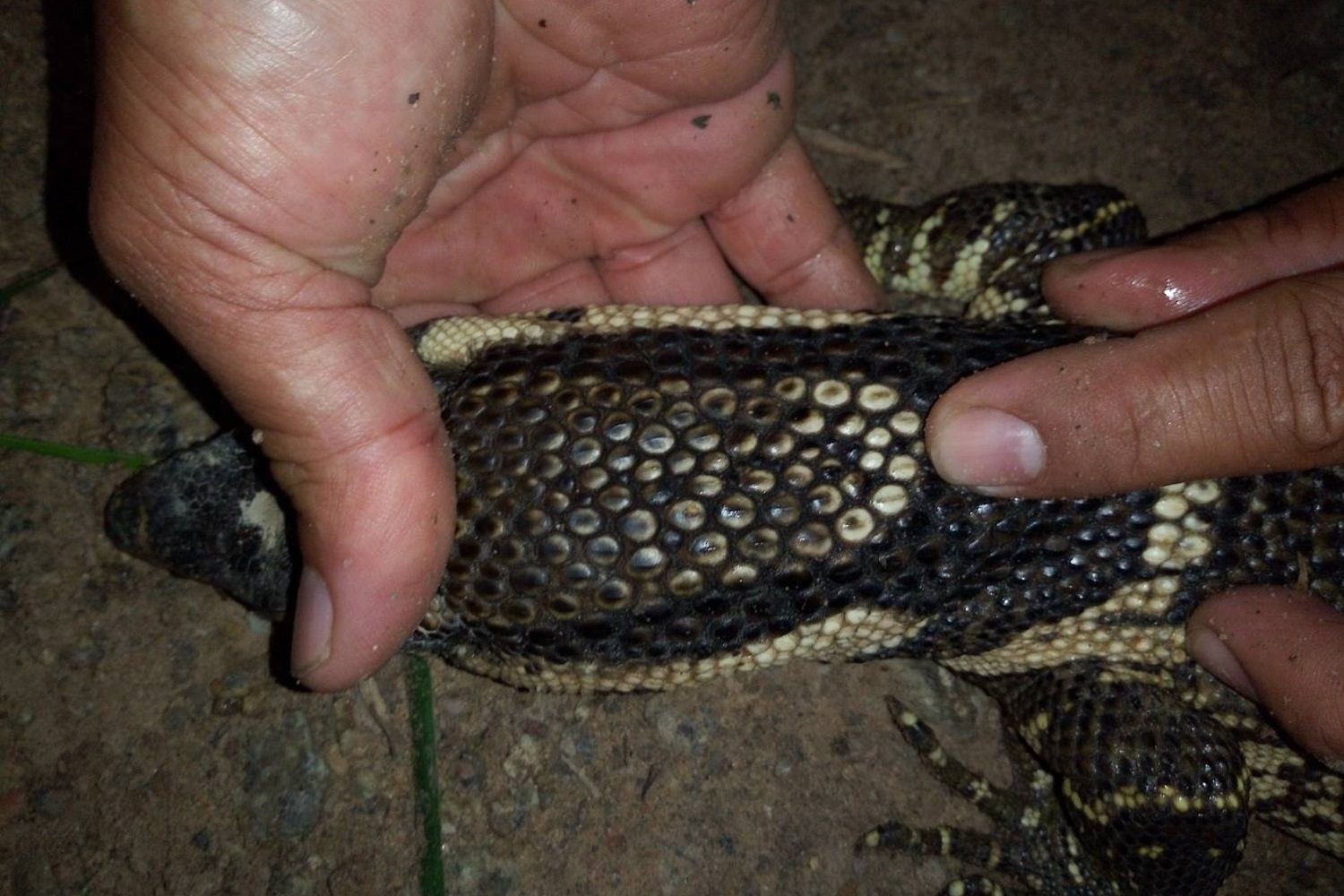 หน่วยกู้ชีพนาทวีนอก ร่วมกับหน่วยกู้ภัยอาริโยสามัคคี อ.นาทวี จ.สงขลา เข้าไปช่วยเหลือชาวบ้าน ในเขตเทศบาลนาทวีนอกจับสัตว์เลื้อยคลานที่ลงไปอยู่ในบ่อเลี้ยงปลาและขึ้นมาไม่ได้