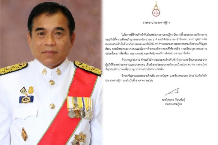 เมื่อวันที่ 1 ต.ค.62 "นายไสลเกษ วัฒนพันธุ์" ประธานศาลฎีกาคนที่ 45 ซึ่งวันนี้ได้ปฏิบัติหน้าที่เป็นวันเเรก ได้ออกสารประธานศาลฎีการะบุ ว่า