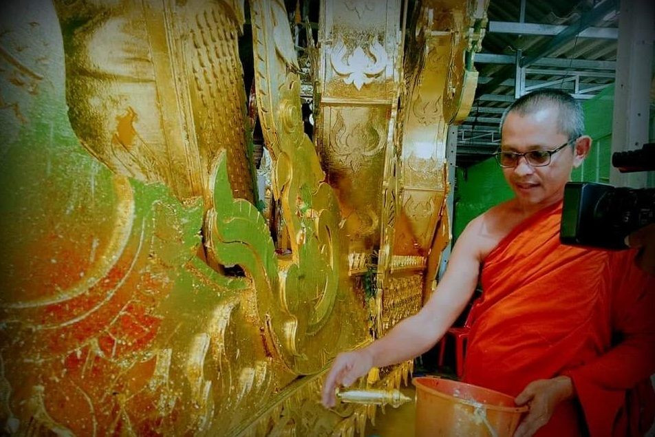 วัดดังสุราษฎร์ฯแต่งรถพนมพระทำจากทองคำเปลว1แสนแผ่น