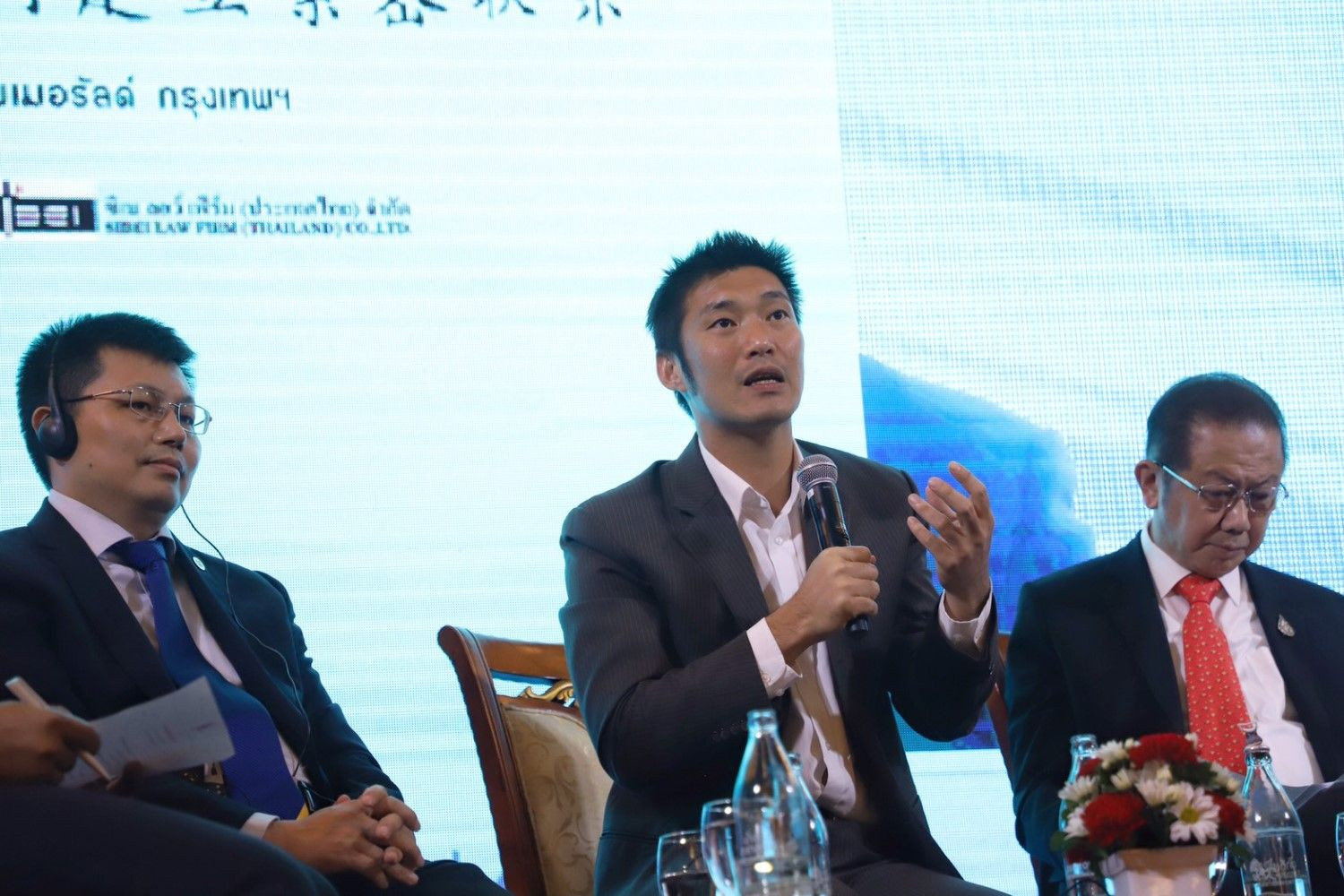 นายธนาธร เริ่มเล่าถึงประสบการณ์การทำงานในภาคธุรกิจและการไปลงทุนในประเทศจีนว่า บริษัทในจีนมีการส่งเสริมธุรกิจจากประเทศไทยหลายอย่าง และการผลิตสินค้าในจีนขึ้นชื่อในเรื่องถูก เร็ว ดี ซึ่งเห็นว่ายังมีโอกาสอีกมากที่บริษัทจีนจะมาสร้างเสริมความสัมพันธ์กับบริษัทไทยให้ก้าวไกลได้ และจากประสบการณ์มีสิ่งที่เราควรเรียนรู้จากจีนอยู่? 2-3 ข้อ? ประเด็นที่ 1.คือการก้าวข้ามจากประเทศกำลังพัฒนาหรือการก้าวพ้นจากกับดักประเทศรายได้ปานกลางเป็นประเทศพัฒนาแล้ว โดยสิ่งที่สำคัญมากคือต้องมีเทคโนโลยีเป็นของตัวเอง ถ้าเรายังไม่สามารถสร้างเทคโนโลยีในประเทศไทยได้เอง จะไม่สามารถก้าวข้ามผ่านกับดักรายได้ปานกลางได้เลย