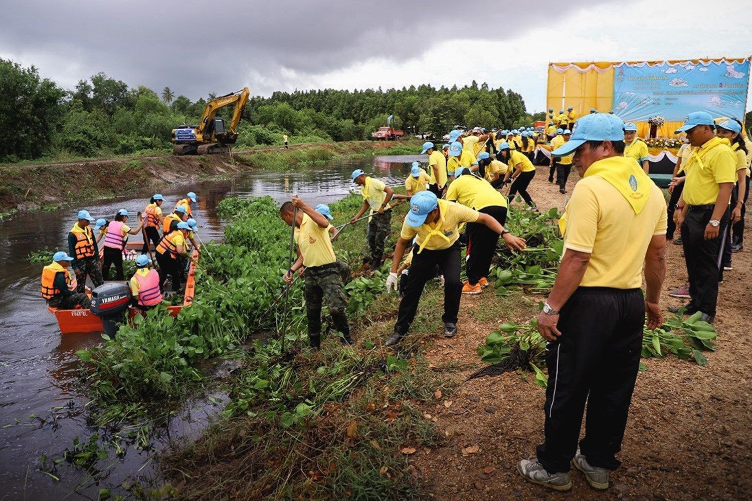 สงขลา-จิตอาสาพระราชทาน 904 วปร.ร่วมกับส่วนราชการและประชาชนจัดกิจกรรมจิตอาสากำจัดวัชพืชในแหล่งน้ำเพื่อรองรับการเกิดอุทกภัย