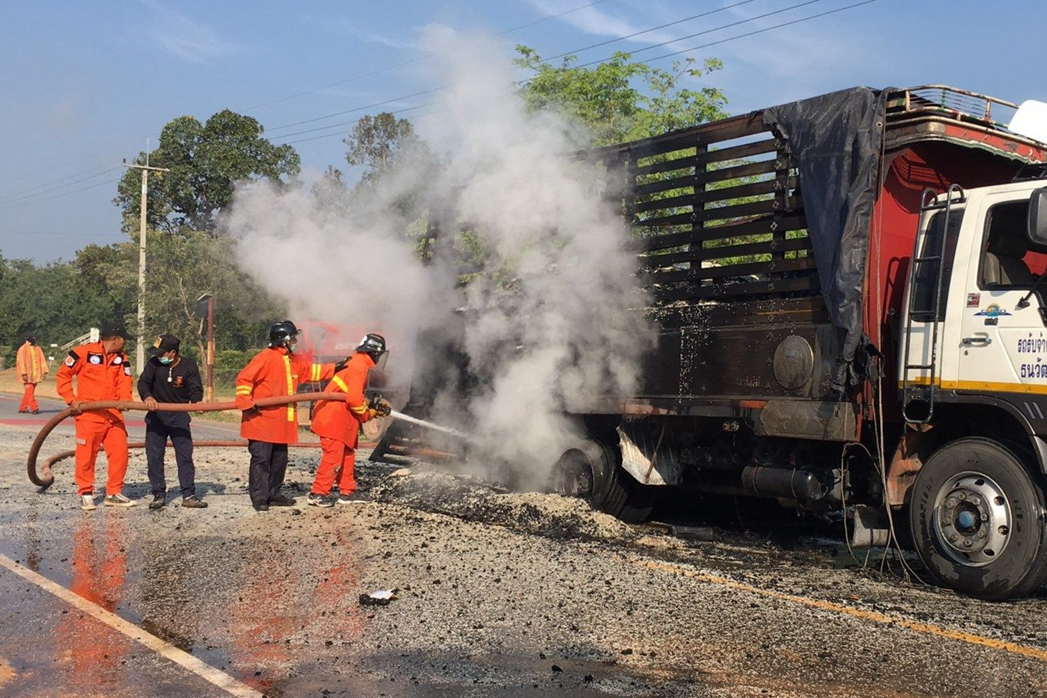ทั้งนี้ เจ้าหน้าที่ได้ระดมรถดับเพลิงในพื้นที่ใกล้เคียงเข้ามาเร่งช่วยกันฉีดสารเคมี และน้ำดับเพลิงที่กำลังไหม้ลุกลามอย่างรวดเร็วภายในตัวรถสิบล้อ ประกอบกับยังมีเสียงระเบิดออกมาจากตัวรถอีกหลายครั้งอย่างต่อเนื่องไม่หยุด ทำให้เจ้าหน้าที่ดับเพลิงนเข้าระงับเหตุด้วยความยากลำบาก หวั่นจะถูกแรงระเบิดได้ตลอดเวลา กว่าจะควบคุาเพลิงได้ใช้เวลานานกว่า 1 ชั่วโมง และเจ้าหน้าที่ต้องปิดการจราจรอยู่นานกว่า 2 ชั่วโมง