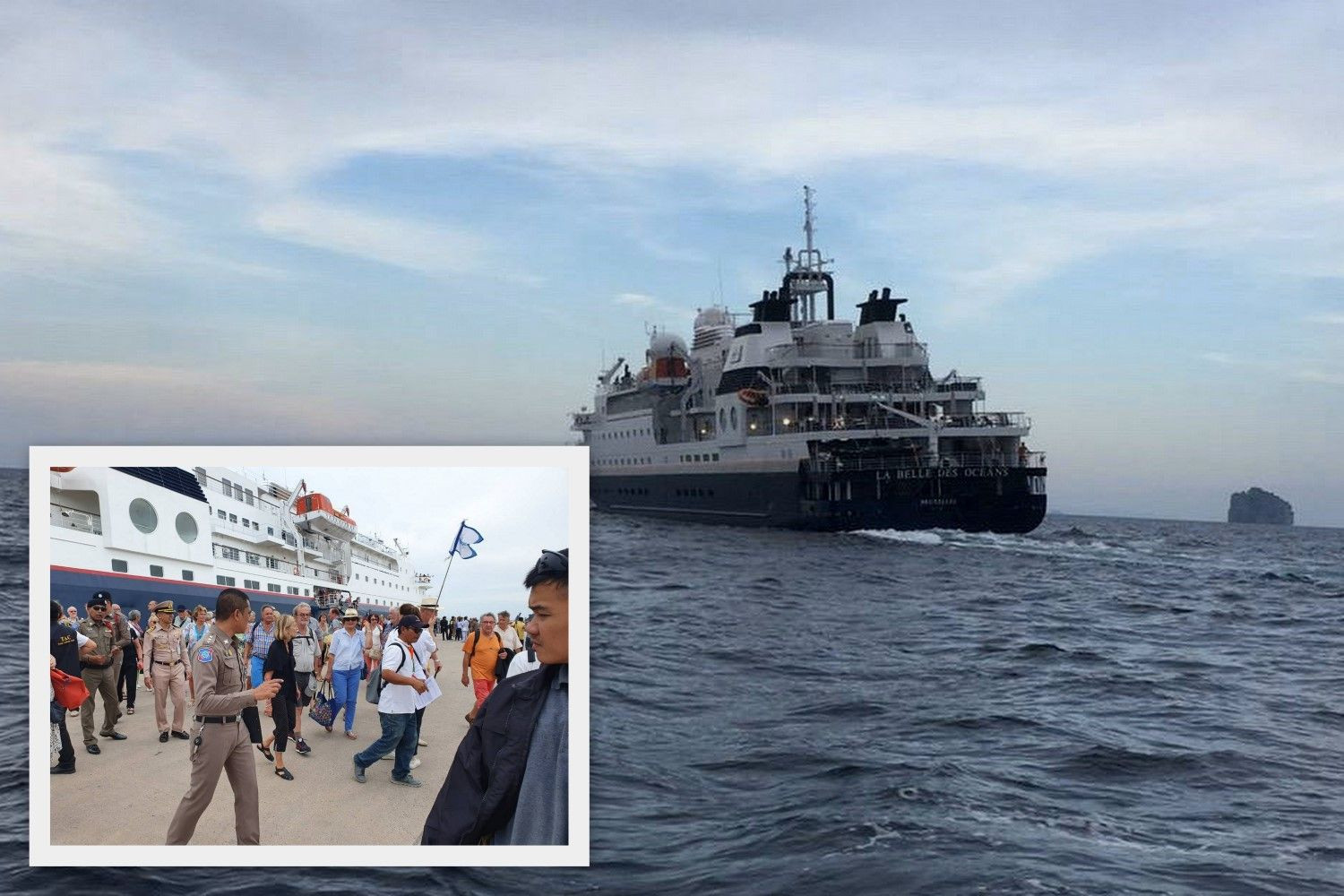 จากการตรวจสอบทราบว่าเป็นเรือโดยสารท่องเที่ยวชื่อ LA BELLE DES OCEAN เป็นเรือสำราญท่องเที่ยว ความยาวประมาณ 100 เมตร เส้นทางเดินเรือประจำคือ ภูเก็ต - กระบี่ - ก.ลังกาวี ขณะเกิดเหตุมีลูกเรือประมาณ 70 คน นักท่องเที่ยวประมาณ 80 คน เป็นชาวฟิลิปปินส์ประมาณ 60 คน สัญชาติอื่นๆ อีกประมาณ 20 คน โดยเรือชนหินบริเวณใกล้เกาะปิดะนอก หมู่เกาะพีพี ส่งผลให้ท้องเรือทะลุ มีน้ำเข้าเรือเล็กน้อย แต่สามารถควบคุมน้ำไว้ได้