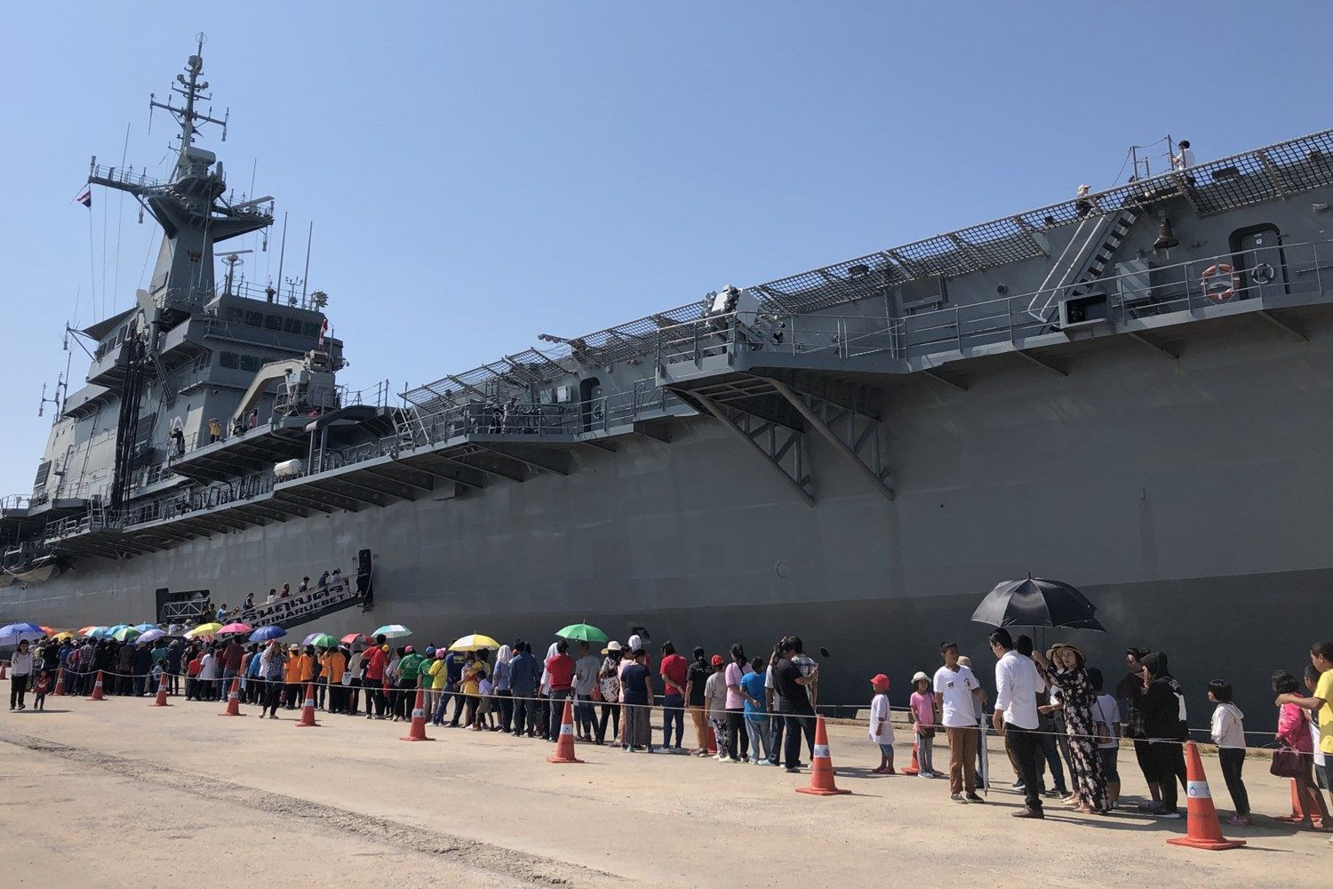 คนประจวบฯนับหมื่นตื่นตาตื่นใจต่อแถวยาวเหยียดขึ้นดูเรือหลวงจักรีนฤเบศร 911
