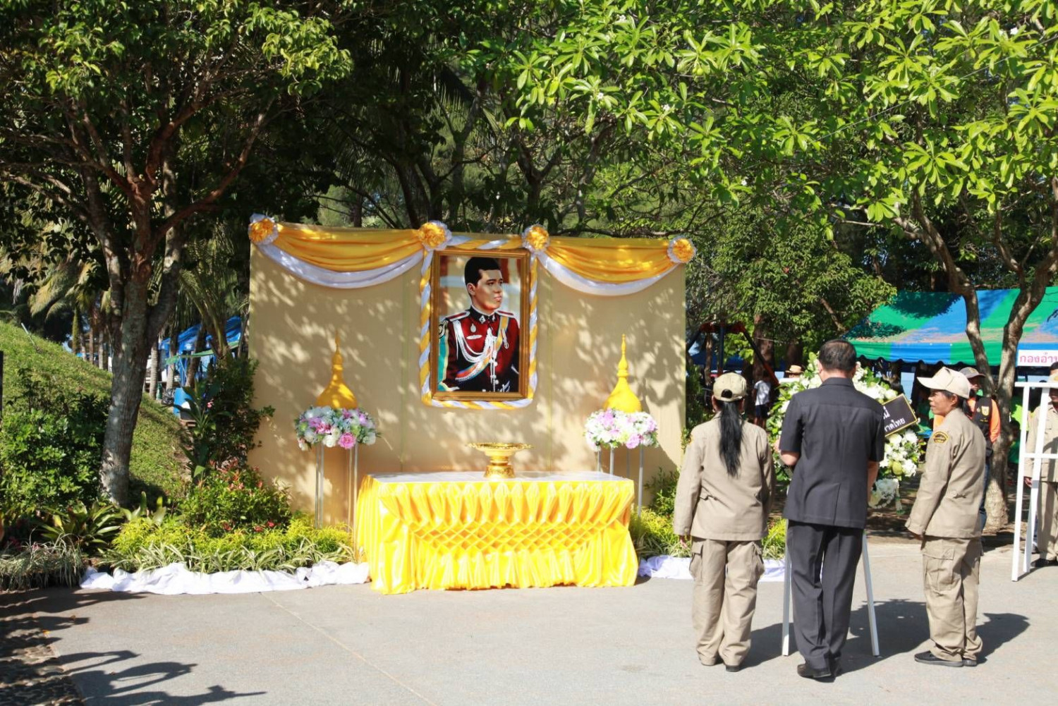 ทั้งนี้ มีพิธีกรรมทางศาสนาทั้ง 3 ศาสนา คือ ศาสนาพุทธ อิสลาม และคริสต์ เพื่ออุทิศส่วนกุศลให้แก่ผู้เสียชีวิต มีญาติผู้เสียชีวิตได้นำรูปถ่าย พร้อมด้วยข้าวปลาอาหารมาร่วมในพิธี พร้อมกับอ่านสารวันป้องกันอุบัติภัยแห่งชาติจากนายกรัฐมนตรี พร้อมกับนำดอกไม้ไปวางยังกำแพงอนุสรณ์สถาน พร้อมกันนี้ได้ร่วมกันวางพวงมาลา และช่อกุหลาบขาวที่หน้ารูปคุณพุ่ม เจนเซ่น พร้อมทั้งยืนไว้อาลัย เพื่อรำลึกถึงบุคคลอันเป็นที่รัก ที่เสียชีวิตจากเหตุการณ์สึนามิเมื่อ 15 ปีที่แล้ว