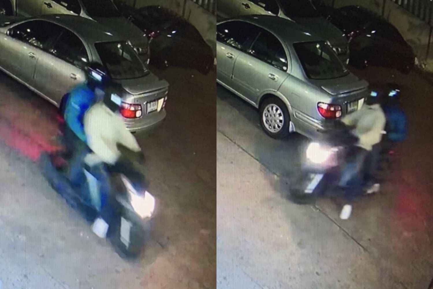 ในคลิปและภาพแสดงเห็นคนร้ายขี่รถจักรยานยนต์ ยี่ห้อฮอนด้าคลิก สีดำ ไม่เห็นแผ่นป้ายทะเบียน คนขับสวมเสื้อแจ๊กเก็ต สีครีม กางเกงขายาว รองเท้าผ้าใบสีขาว ส่วนคนซ้อนท้าย สวมเสื้อแจ๊กเก็ต สีน้ำเงิน กางเกงยีนส์ขายาว รองเท้าผ้าใบสีขาว ทั้งคู่สวมหมวกกันน็อกแบบเต็มใบสีดำ และใส่ถุงมือสีดำ ขี่เข้ามาในที่เกิดเหตุช่วงเวลา 20.17 น. ก่อนจะขี่จักรยานยนต์วนรถกลับออกไป เนื่องจากในซอยเกิดเหตุเป็นซอยตัน มุ่งหน้าไปยังแยกอังรีดูนังต์ เลี้ยวซ้ายวิ่งถนนพระราม 4 มุ่งหน้ามาแยกสามย่าน