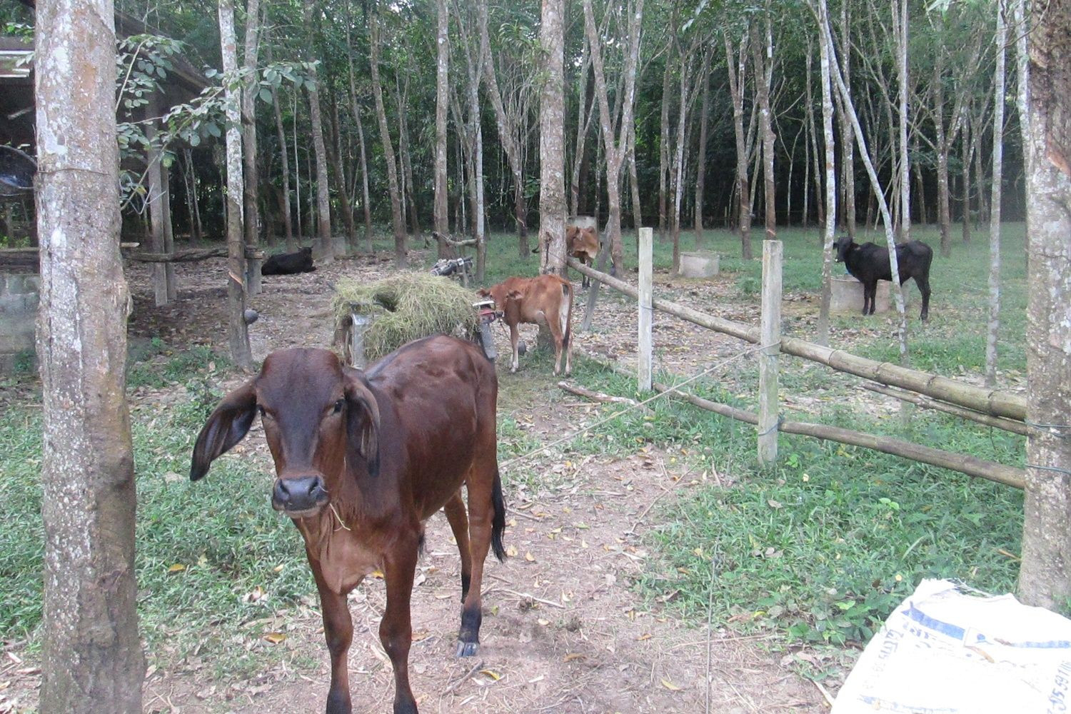 สำหรับการเลี้ยงโค แต่เดิมก็เลี้ยงกระจัดกระจาย มีทั้งโคชน โคเนื้อพื้นบ้าน โดยสามารถเลี้ยงครัวเรือนละ 2 ตัว และตามสภาพพื้นที่ และสามารถเลี้ยงในสวนยางพารา จะทำให้ได้ปุ๋ยจากมูลโค ตรงนี้จะลดต้นการผลิต โดยไม่ต้องซื้อปุ๋ยด้วย
