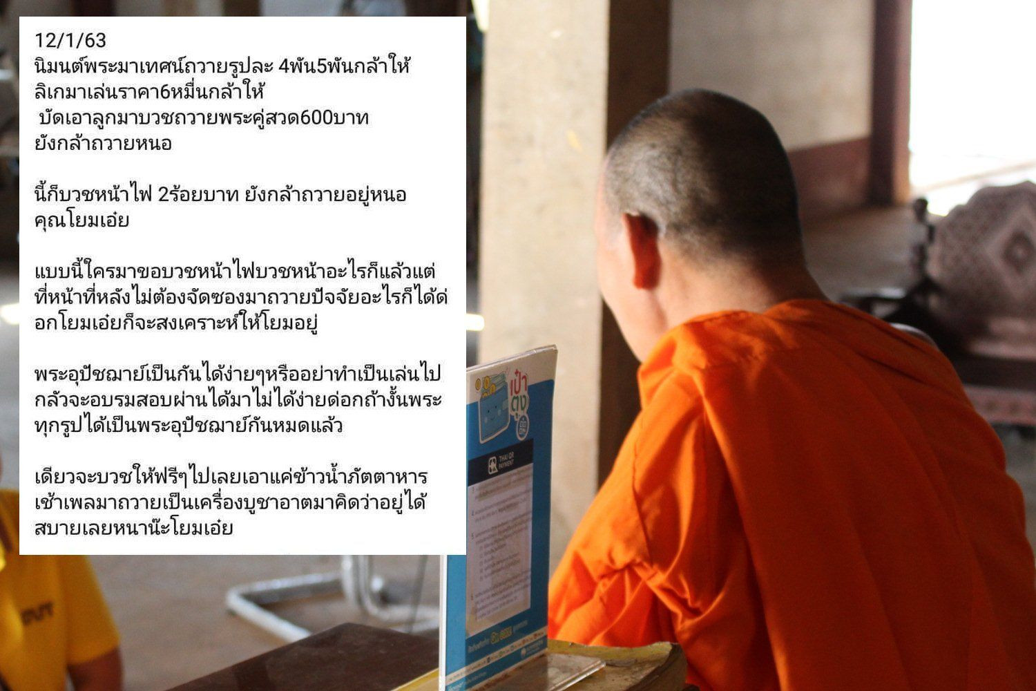 ผู้สื่อข่าวรายงานว่า จากกรณีที่สังคมออนไลน์วิพากษ์วิจารณ์ ข้อความที่โพสต์โดยพระภิกษุรูปหนึ่งที่มีเนื้อหาในทำนองตัดพ้อเรื่องการใส่ปัจจัยของญาติโยมว่า กล้าใส่ซองได้แค่ 200 บาท แบบนี้บวชให้ฟรีๆ เลยก็ได้ ซึ่งโพสต์ดังกล่าวได้ถูกแชร์ต่อและมีผู้ร่วมแสดงความคิดเห็นเป็นจำนวนมากนั้น