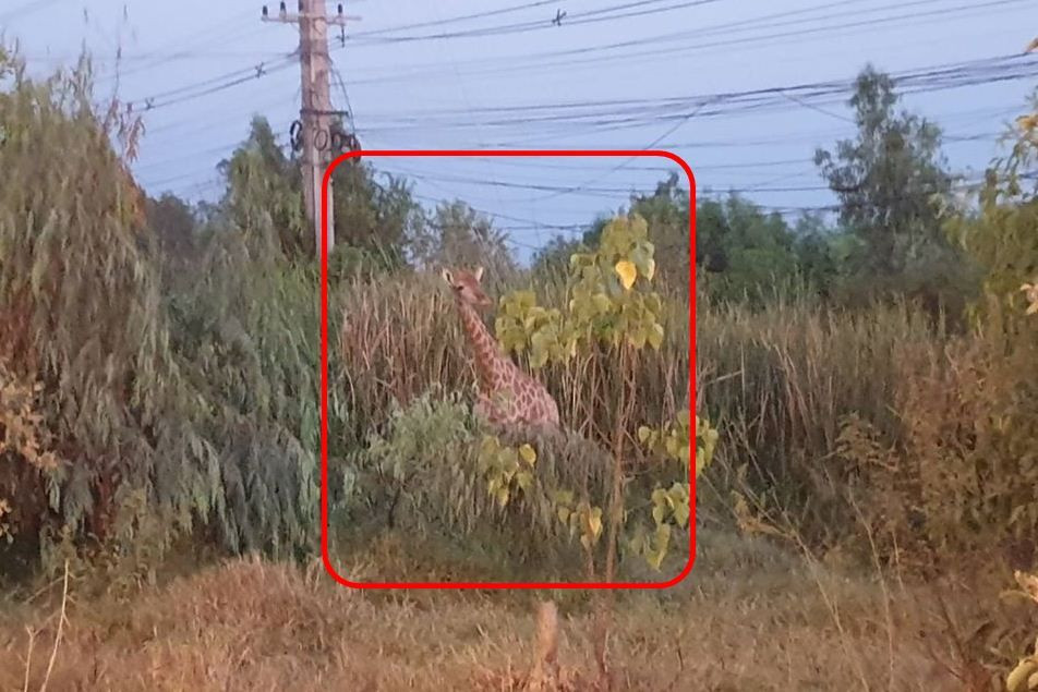 ยีราฟหลุดจากรถบรรทุกขณะเคลื่อนย้าย วิ่งเตลิดกลางถนนฉะเชิงเทรา