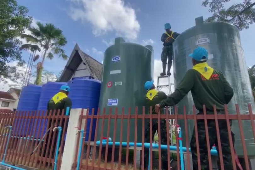 ที่หมู่บ้านการเคหะชุมชนนครศรีธรรมราช 2 หมู่ 5 ต.ปากพูน อ.เมือง จ.นครศรีธรรมราช พันเอกสุริน ทองเต็ม ผู้บังคับศูนย์การฝึกนักศึกษาวิชาทหาร มณฑลทหารบกที่ 41 ค่ายวชิราวุธ กองทัพภาคที่ 4 พร้อมทหารจิตอาสาพระราชทานและนักศึกษาวิชาทหารพลได้นำรถบรรทุกขนน้ำดิบสะอาดออกแจกจ่ายให้กับชาวเคหะฯ ที่กำลังประสบปัญหาระบบน้ำประปาไม่ไหลติดต่อกันนานนับเดือนแล้ว
