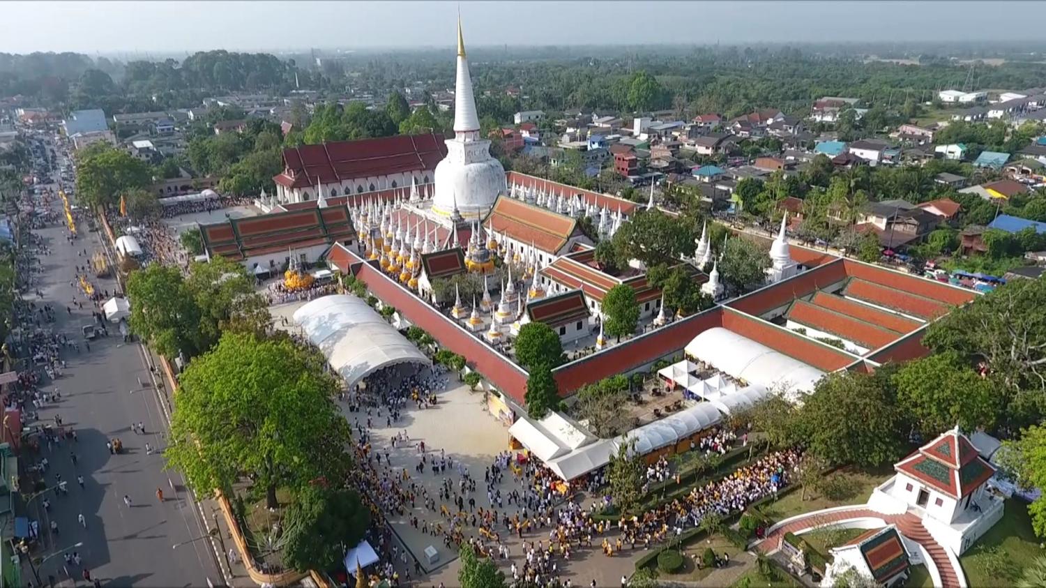 ส่องประเพณีแห่ผ้าขึ้นพระธาตุเมืองนคร คนเรือนแสนร่วมสักการะวันมาฆบูชา