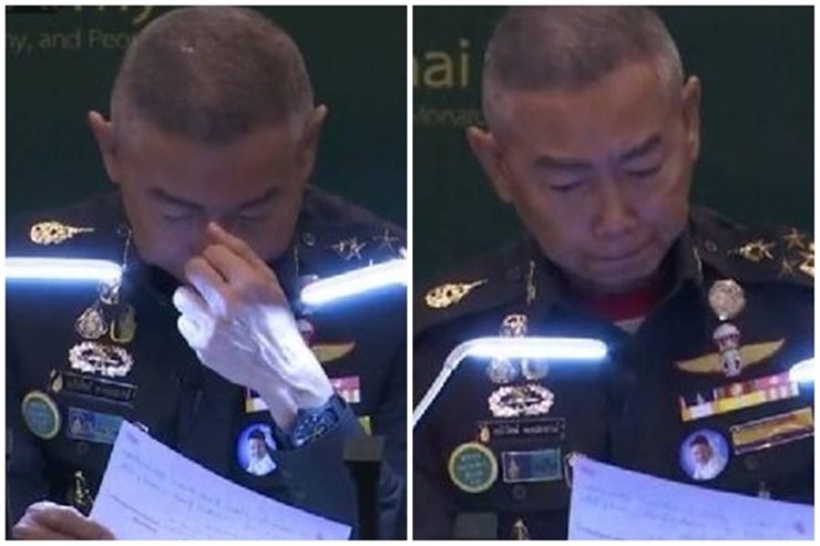 ผู้สื่อข่าวรายงานว่า ทั้งนี้หลายช่วงในการแถลงข่าว พล.อ.อภิรัชต์ ถึงกับน้ำตาซึม และถอนหายใจ บางช่วงก้มหน้าปาดน้ำตา