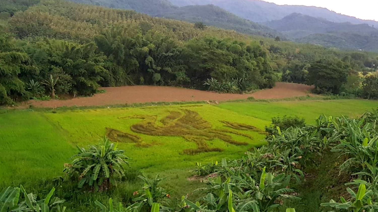 คลั่ง!แฟนพันธุ์แท้เดอะค็อปลงทุนปลูกข้าวเป็นโลโก้หงส์แดงบนเนื้อที่กว่า 2 ไร่