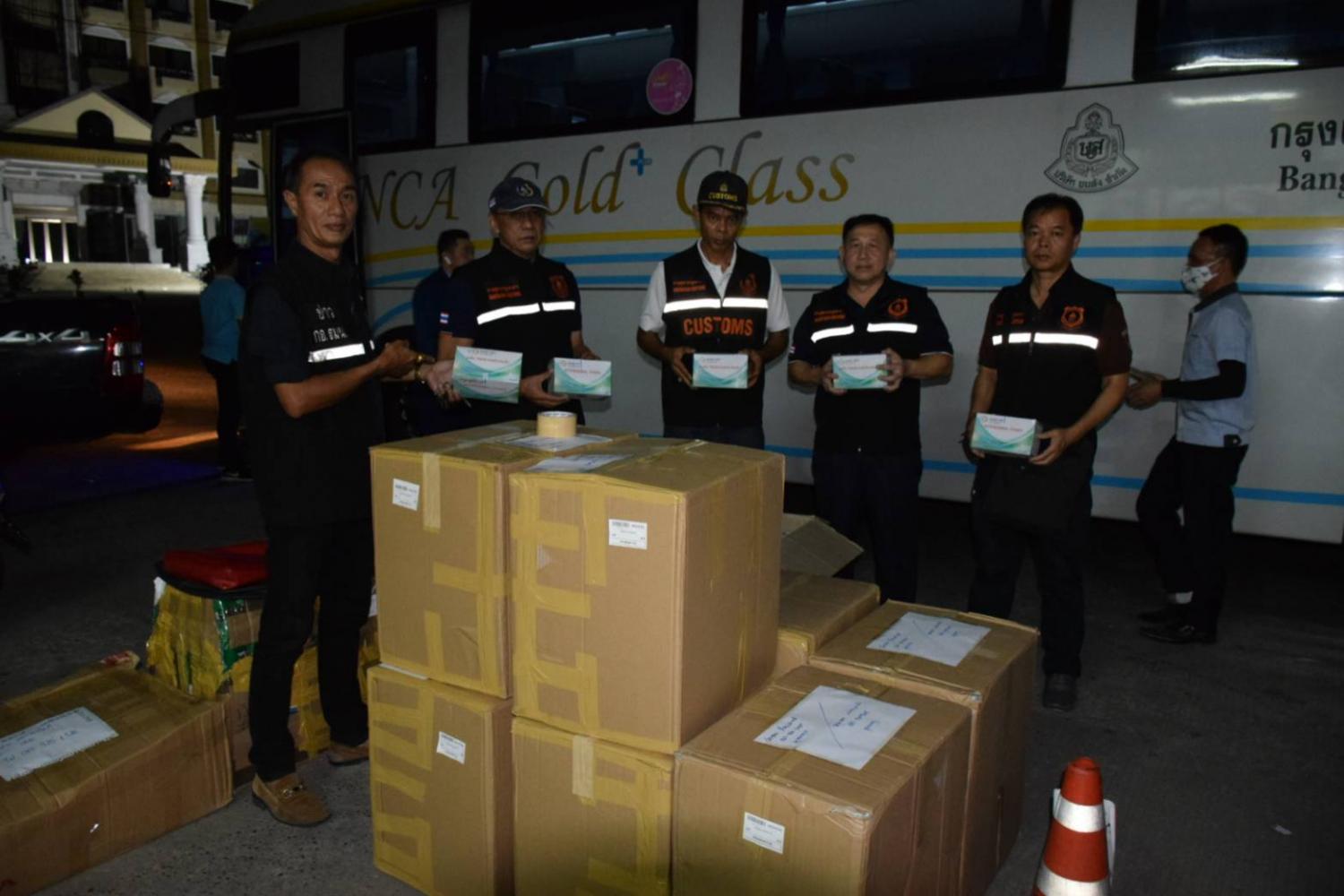 ศุลกากรยึดหน้ากากอนามัยจากเวียดนามซุกใต้รถทัวร์วิ่งผ่านสปป.ลาวเข้าไทย