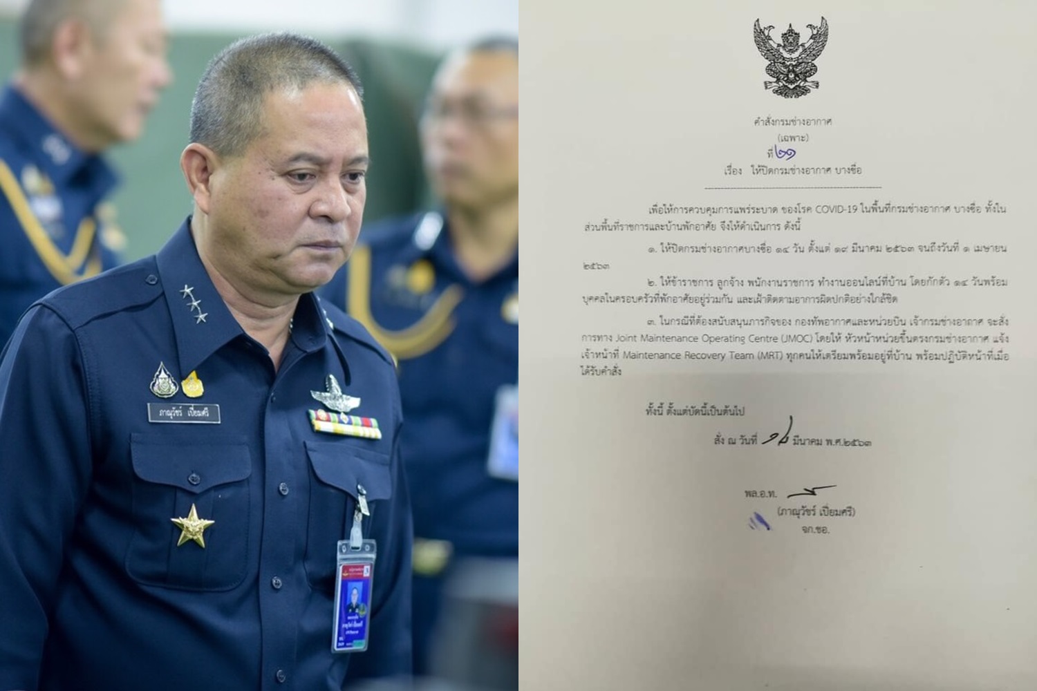 เจ้ากรมช่างอากาศออกคำสั่งปิดที่ทำการ ให้ข้าราชการ-ลูกจ้าง-พนักงาน-ครอบครัวที่พักอาศัยอยู่ด้วยกัน กักตัวอยู่บ้าน 14 วัน เฝ้าติดตามอาการผิดปรกติใกล้ชิด