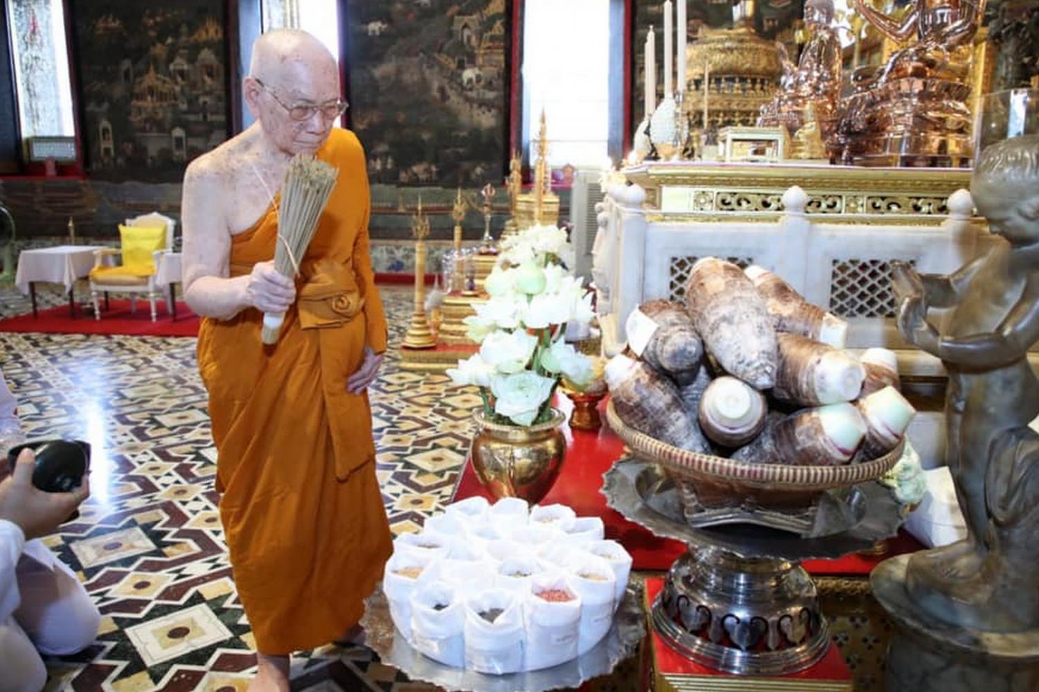พระบาทสมเด็จพระเจ้าอยู่หัว ทรงพระกรุณาโปรดอาราธนาให้ สมเด็จพระสังฆราช ทรงเป็นประธานพิธีปลุกเสกเมล็ดพันธุ์ข้าวพระราชทาน