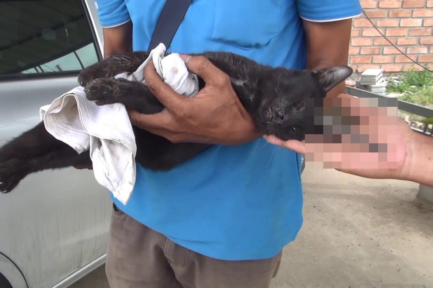นายวรเศรษฐ สนสุผล เจ้าของอู่ซ่อมรถ “เจตคาร์แคร์” อ.ปะคำ จ.บุรีรัมย์ และนายรัฐกร ยูสตรอมสัน อาสากู้ภัยสว่างจรรยาธรรมประจำจุดบริการปะคำ นำแมว แมวจรจัดเพศผู้ที่กลางหัวของมันถูกลูกดอกยาวเกือบ 1 เมตรเสียบปักคาอยู่และส่งเสียงร้องโหยหวนด้วยความเจ็บปวด ไปยังคลินิกสัตว์ใน อ.ปะคำ แต่ปรากฎว่าคลินิกปิด
