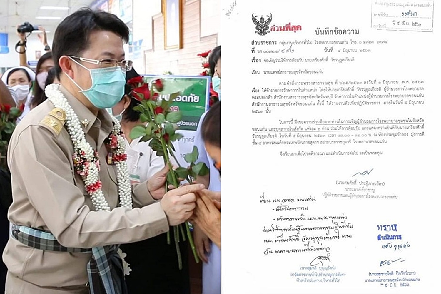 "อนุทิน"เห็นยัง! เปิดหนังสือต้อนรับสั่งเกณฑ์ผอ.โรงพยาบาลชุมชนทั้งจังหวัดไปต้อนรับหมอเกรียงศักดิ์"นั่งเก้าอี้ผอ.โรงพยาบาลขอนแก่น
