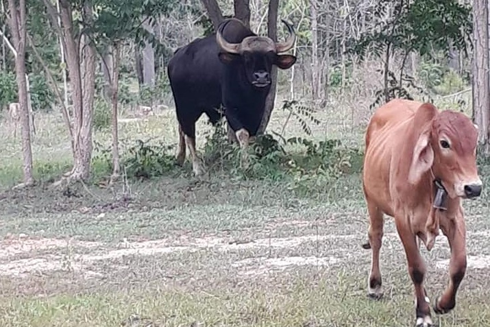หมู่บ้านอยู่ไกลจากป่า กระทิงเปลี่ยวหลุดมาอยู่กับวัวควายชาวบ้าน
