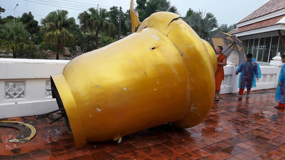 เร่งซ่อมยอดฉัตรหอพระประวัติสมเด็จพระญาณสังวรฯกถูกพายุพัดหัก