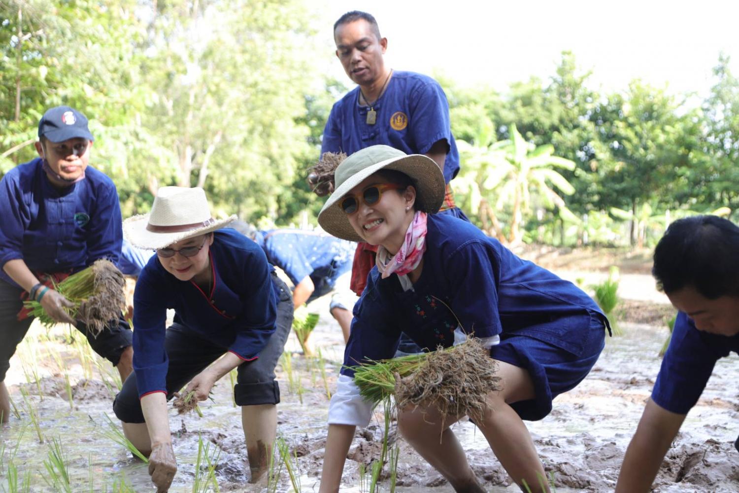 "เเพนเค้ก"ร่วมถอนกล้าดำนาบนพื้นที่โคกหนองนาดาราโมเดล