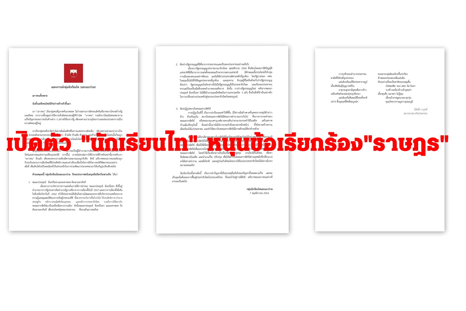 เปิดตัว "นักเรียนไท" หนุน3ข้อเรียกร้อง"ราษฎร"ชี้ถือเป็นจุดเริ่มต้นการฟื้นฟูระบอบประชาธิปไตย