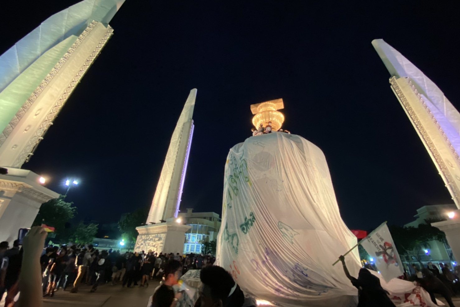 ตร.ชี้ม็อบนำผ้าคลุมอนุสาวรีย์ประชาธิปไตยมีความผิดเตรียมดำเนินคดี