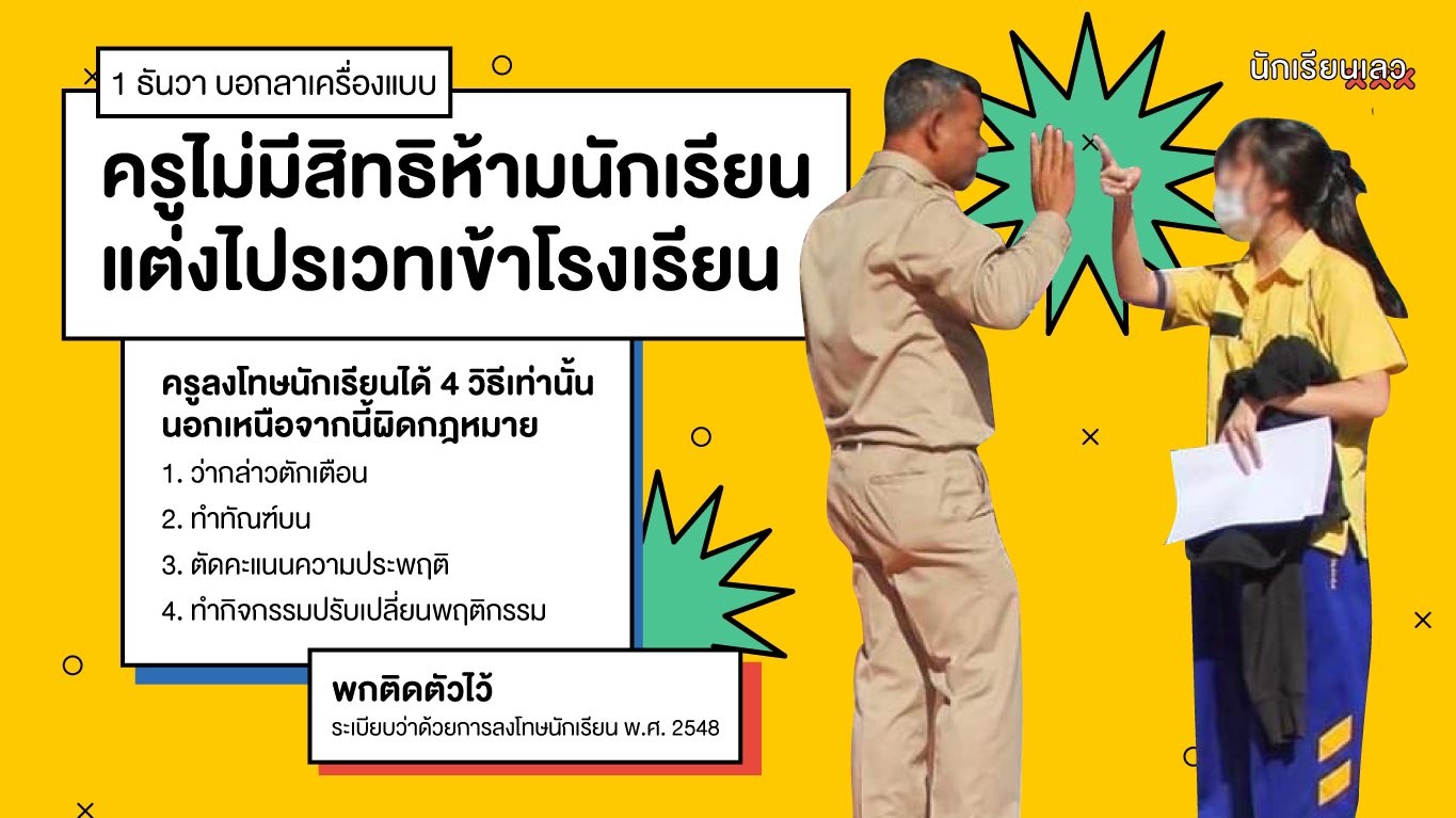 นักเรียนเลว กางระเบียบว่าด้วยการลงโทษนักเรียน ปี48 ลั่นครูไม่มีสิทธิไล่กลับไปเปลี่ยนชุดหากแต่งไปรเวทไปโรงเรียน 1ธ.ค.63