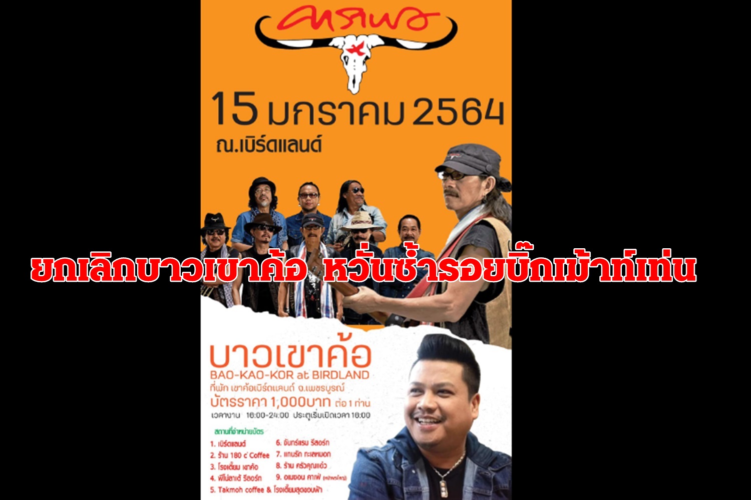 เมื่อวันที่ 16 ธ.ค.63 เพจที่พักเขาค้อเบิร์ดแลนด์รีสอร์ต ประกาศแจ้งเลื่อนคอนเสิร์ตบาวเขาค้อ วันที่ 15 มกราคม 2564 ที่บริเวณเบิร์ดแลนด์รีสอร์ตเขาค้อ หมู่ที่ 2 ต.ทุ่งสมอ อ.เขาค้อ จ.เพชรบูรณ์ โดยจะมีวงคาราบาวมาแสดงแบบเต็มวง