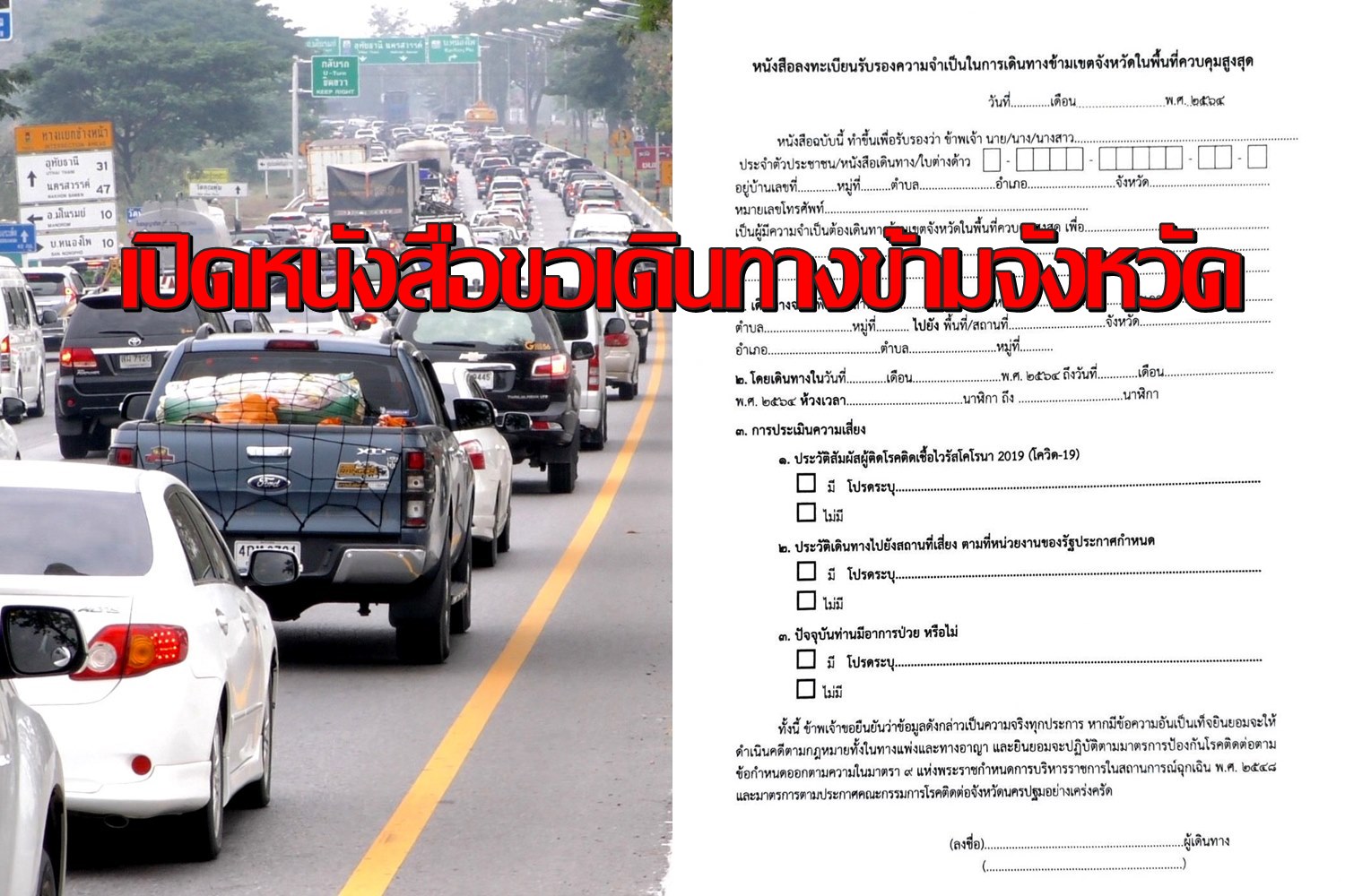 เปิดแบบฟอร์มหนังสือรับรองขอเดินทางข้ามเขตจังหวัด