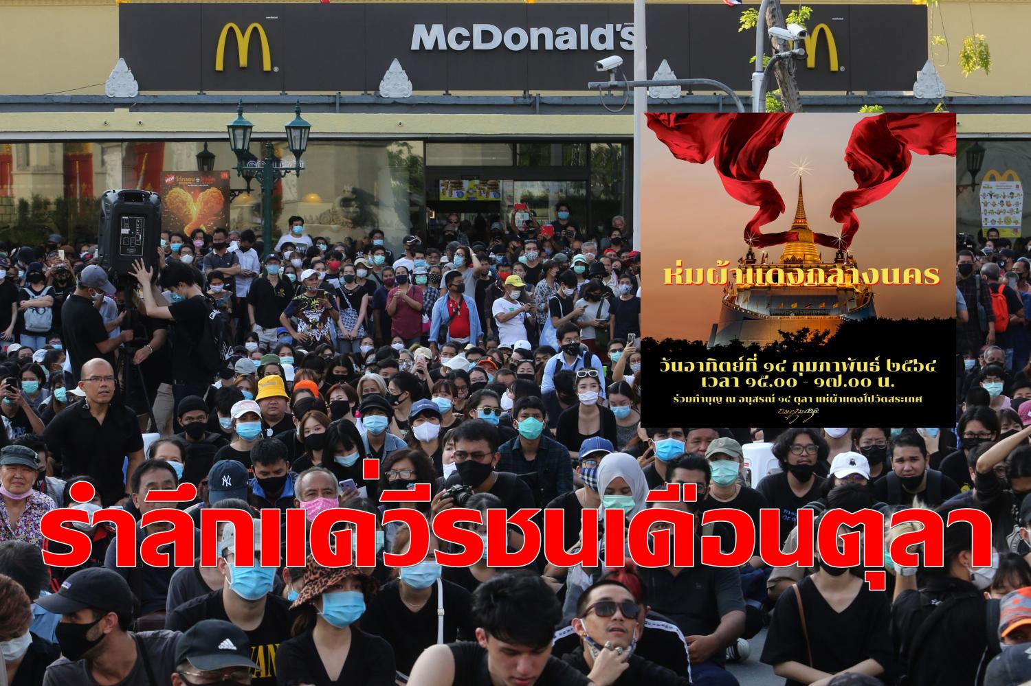 “ราษฎร” นัดร่วมทำบุญให้วีรชนเดือนตุลา ที่อนุสรณ์สถาน 14 ตุลาฯ ก่อนเคลื่อนขบวนไปห่มผ้าแดงภูเขาทอง รำลึกประวัติศาสตร์การต่อสู้
