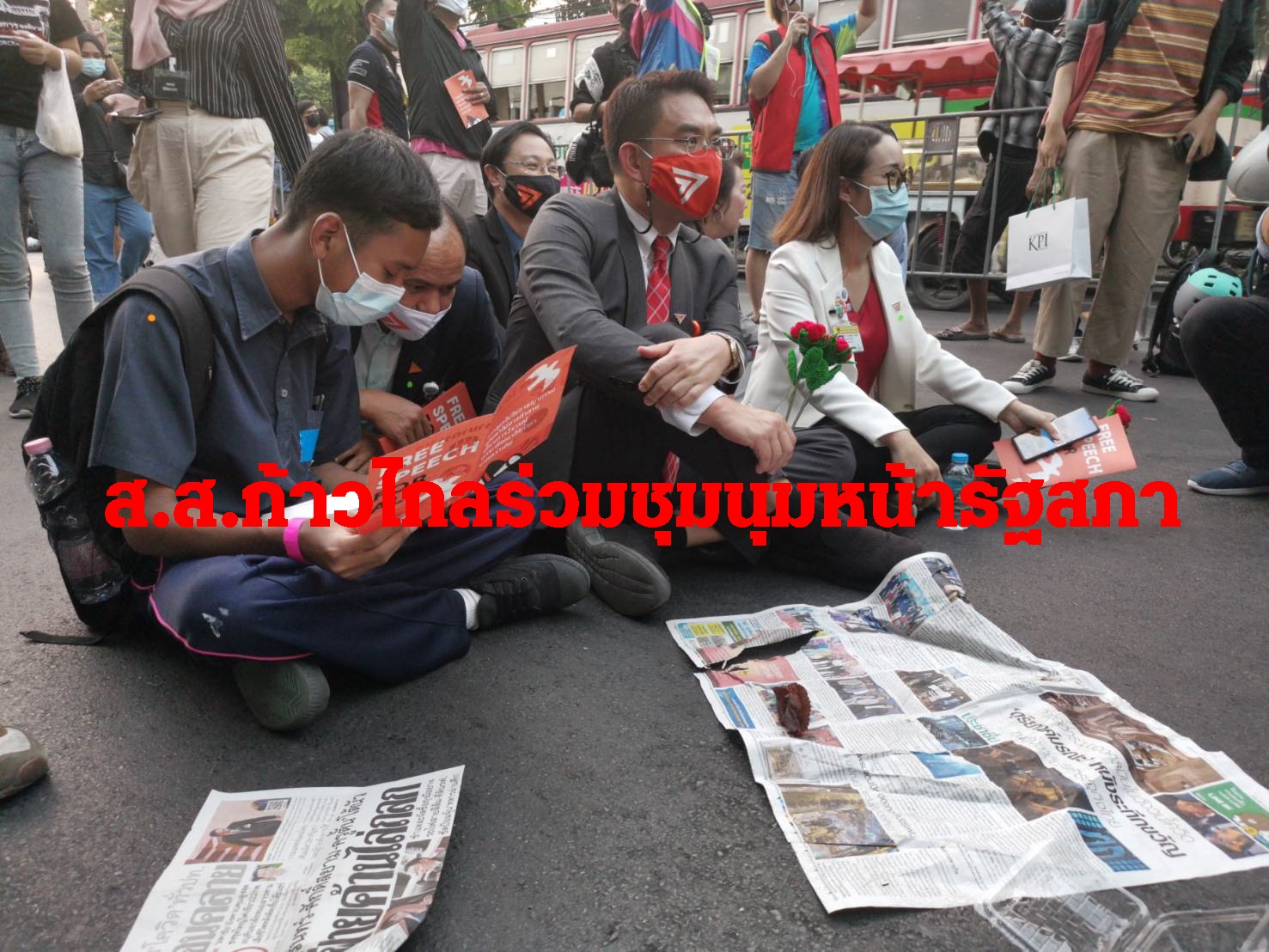 ส.ส.ก้าวไกลร่วมชุมนุมม็อบหน้ารัฐสภาเกาะติดศึกซักฟอก