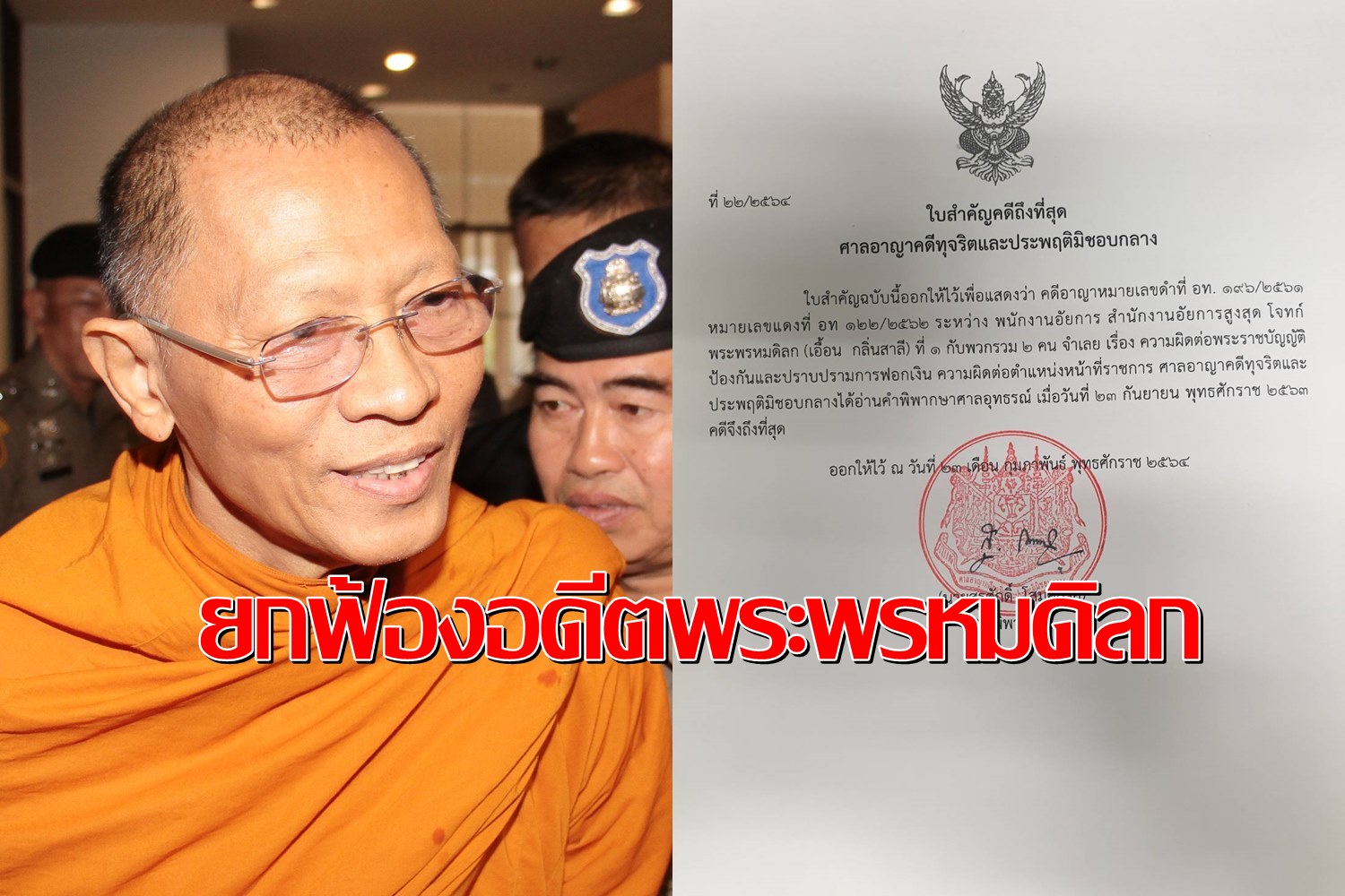ทนายความอดีตพระพรหมดิลกเผยศาลอาญาคดีทุจริตฯออกใบสำคัญคดีถึงที่สุดอดีตพระดังกับพวกไม่มีความผิด เหลือเพียงคดีสนับสนุนเจ้าพนักงานกระทำผิดมาตรา 157 อยู่ระหว่างการอุทธรณ์
