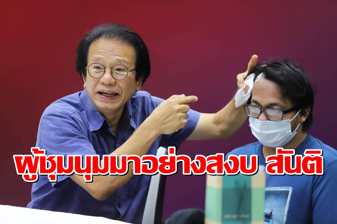 นายแพทย์ทศพร นำผู้ชุมนุมถูกกระสุนยางยิงมาแถลงข่าว เผยโชคดีที่กระสุนไม่ทะลุเข้ากะโหลก อัดเจ้าหน้าที่ไม่จำเป็นต้องใช้ความรุนแรงเพราะม็อบชุมนุมอย่างสงบสันติ แนะการชุมนุมควรมี "แกนนำ"