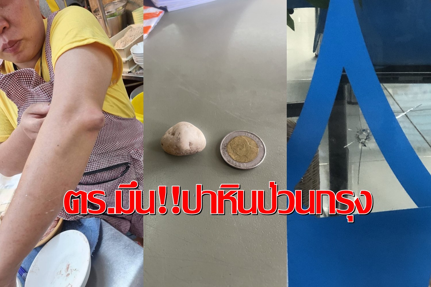 อย่างไรก็ตาม หลังเกิดเหตุพบเป็นหินสีขาว กลมมน คล้ายกับหินประดับตกเเต่งหรือหินตู้ปลาที่พบในรถผู้เสียหายรายก่อนหน้านี้ ซึ่งตนเเละพนักงานในร้านได้รับบาดเจ็บจากเหตุนี้ด้วย ยอมรับว่ากังวลกับสิ่งที่เกิดขึ้น กลัวว่าลูกค้าที่มานั่งกินอาหารในร้านจะโดนลูกหลงไปด้วย หลังจากเกิดเหตุตนได้เเจ้งความกับ สน.พหลโยธินไปเเล้ว เเละวันนี้ก็มาให้ข้อมูลกับฝ่ายสืบสวน สน.สุทธิสารเพิ่มเติม