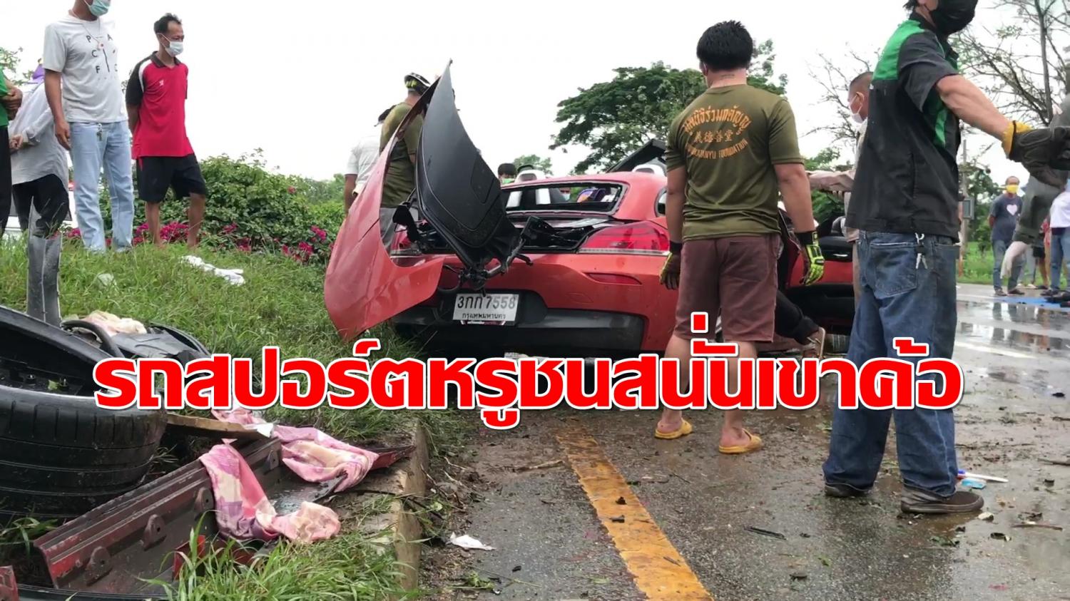 เก๋งสปอร์ตหรูซิ่งฝ่าสายฝนปีนเกาะกลางถนนชนสนั่นตาย 3 เจ็บ 1