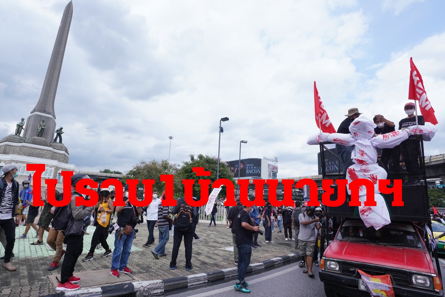 ม็อบ7สิงหาเคลื่อนออกจากอนุสาวรีย์ชัยฯไปบ้านพักนายกฯที่ราบ1 ตามคำประกาผ่านทางเฟซบุ๊กของกลุ่มเยาวชนปลดเอก