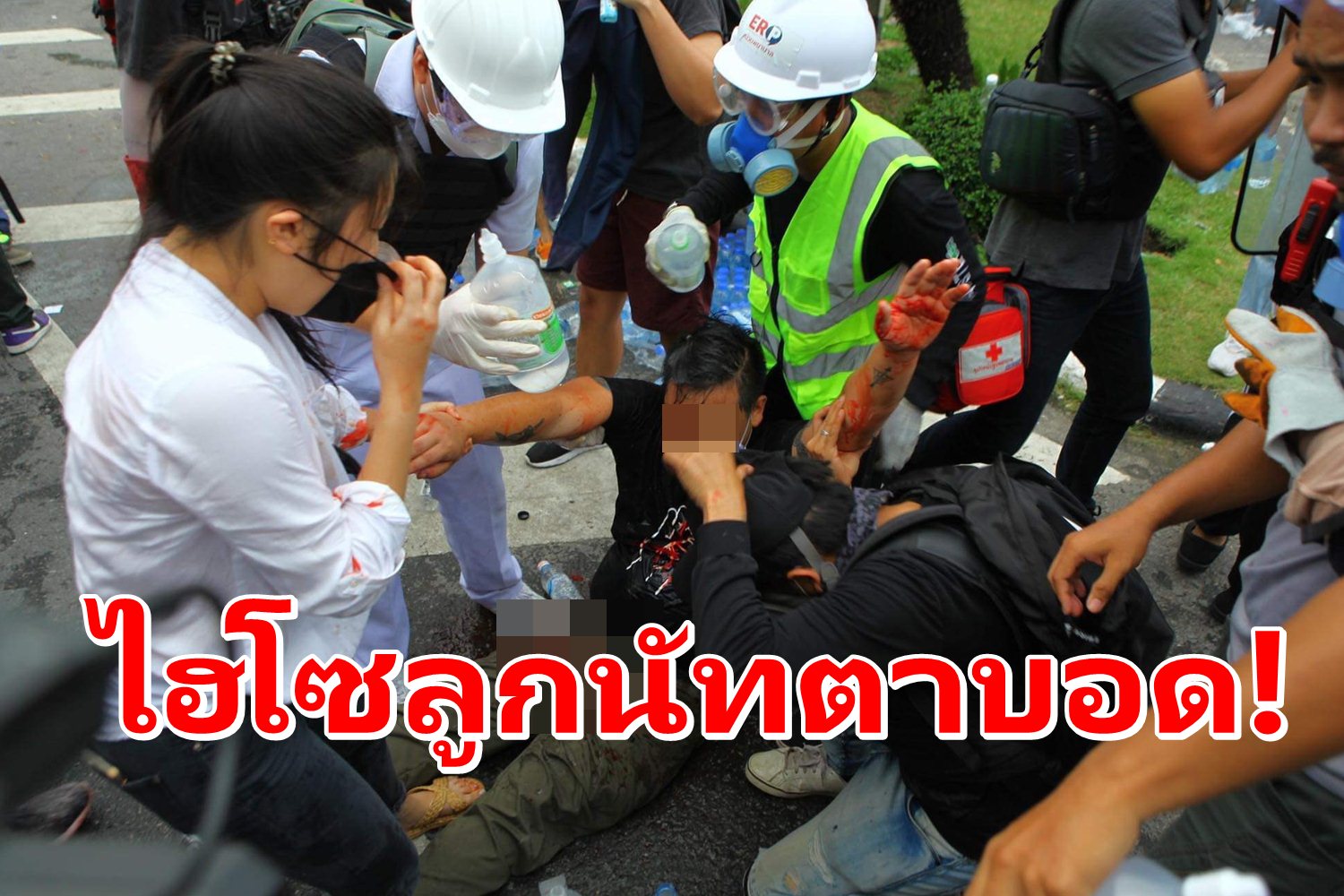 "ไฮโซลูกนัทตาบอด!!! จากการถูกตำรวจยิงในขณะที่ปราศรัย เรื่องนี้ต้องมีคนรับผิดชอบ!" เพจแนวร่วมธรรมศาสตร์และการชุมนุมระบุ