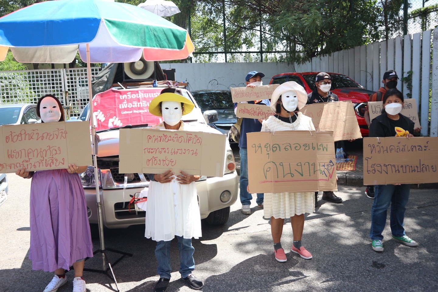 กลุ่มผู้ใช้แรงงานแต่งชุดคลุมท้องวอนสุชาติแก้โควิดโรงงาน