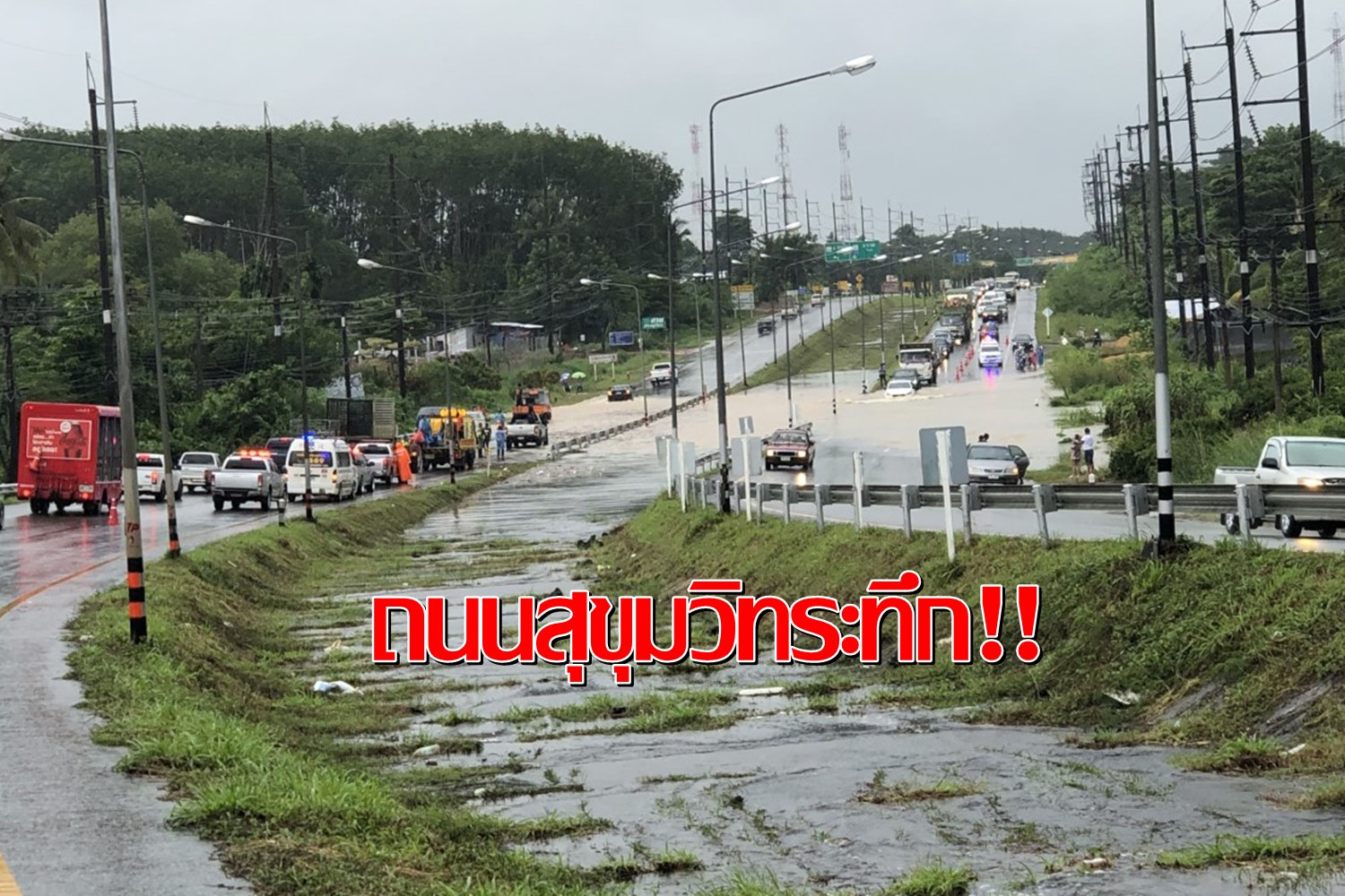 ตราด-ฝนตกหนักหลายชั่วโมงในพื้นที่เกาะช้าง-เกาะกูดส่งผลให้น้ำท่วมถนนสุขุมวิทบางจุดสูงกว่า 50 ซม.ทำให้รถเล็กวิ่งผ่านไม่ได้
