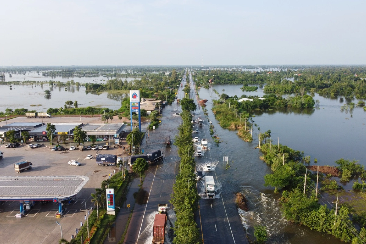เปิดภาพมุมสูงน้ำท่วมถนนมิตรภาพโคราช-ขอนแก่น