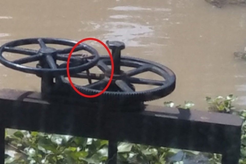 มือดีเชื่อมเหล็กปิดตายตัวหมุนประตูระบายน้ำ