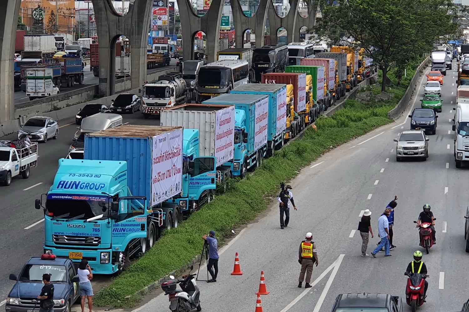 เมื่อวันที่ 19 ต.ค.64 เวลา 13.00 น. กลุ่มรถบรรทุกที่เข้าร่วมกิจกรรม Truck Power ซึ่งจัดโดย สหพันธ์การขนส่งเเห่งประเทศไทย ได้รวมตัว บริเวณ ช่องทางด่วน ถนนเทพรัตน(บางนา-ตราด) บริเวณหน้าห้างสรรพสินค้า มาร์เก็ตวิลเลจ เพื่อเรียกร้องให้รัฐบาลตรึงราคาน้ำมันดีเซลที่ลิตรละ 25 บาท