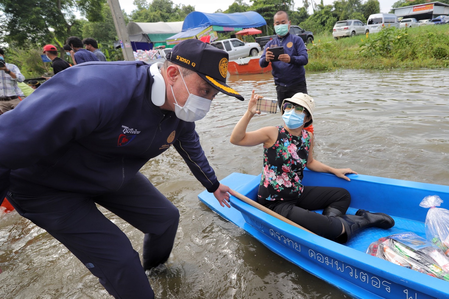 เมื่อวันที่ 21ต.ค.64 นายศักดิ์สยาม ชิดชอบ รัฐมนตรีว่าการกระทรวงคมนาคม พร้อมคณะผู้บริหารกระทรวงคมนาคม ลงพื้นที่ตรวจเยี่ยมให้กำลังใจประชาชน พร้อมมอบถุงยังชีพให้กับประชาชนผู้ประสบอุทกภัยและตรวจเส้นทางคมนาคมที่ได้รับความเสียหายจากอุทกภัย ในพื้นที่จังหวัดปทุมธานี โดยมี นายณรงค์ศักดิ์ โอสถธนากร ผู้ว่าราชการจังหวัดปทุมธานี นายดรณ์ สมิตะเกษตริน ปลัดจังหวัดปทุมธานี นางสาวธนิยา นัยพินิจ หัวหน้าสำนักงานจังหวัดปทุมธานี นายมนตรี ลังกาพินธุ์ นายอำเภอสามโคก นายชาญ พวงเพ็ชร์ อดีตนายกอบจ.ปทุมธานี นายพิษณุ พลธี สส.เขต6 ปทุมธานี นายอนาวิล รัตนสถาพร สส.เขต3ปทุมธานี นางพรพิมล ธรรมสาร สส.เขต5 ปทุมธานี หัวหน้าส่วนราชการและหน่วยงานที่เกี่ยวข้องเข้าร่วมลงพื้นที่ว่าการอำเภอสามโคก (หลังเก่า) อำเภอสามโคก จังหวัดปทุมธานี
