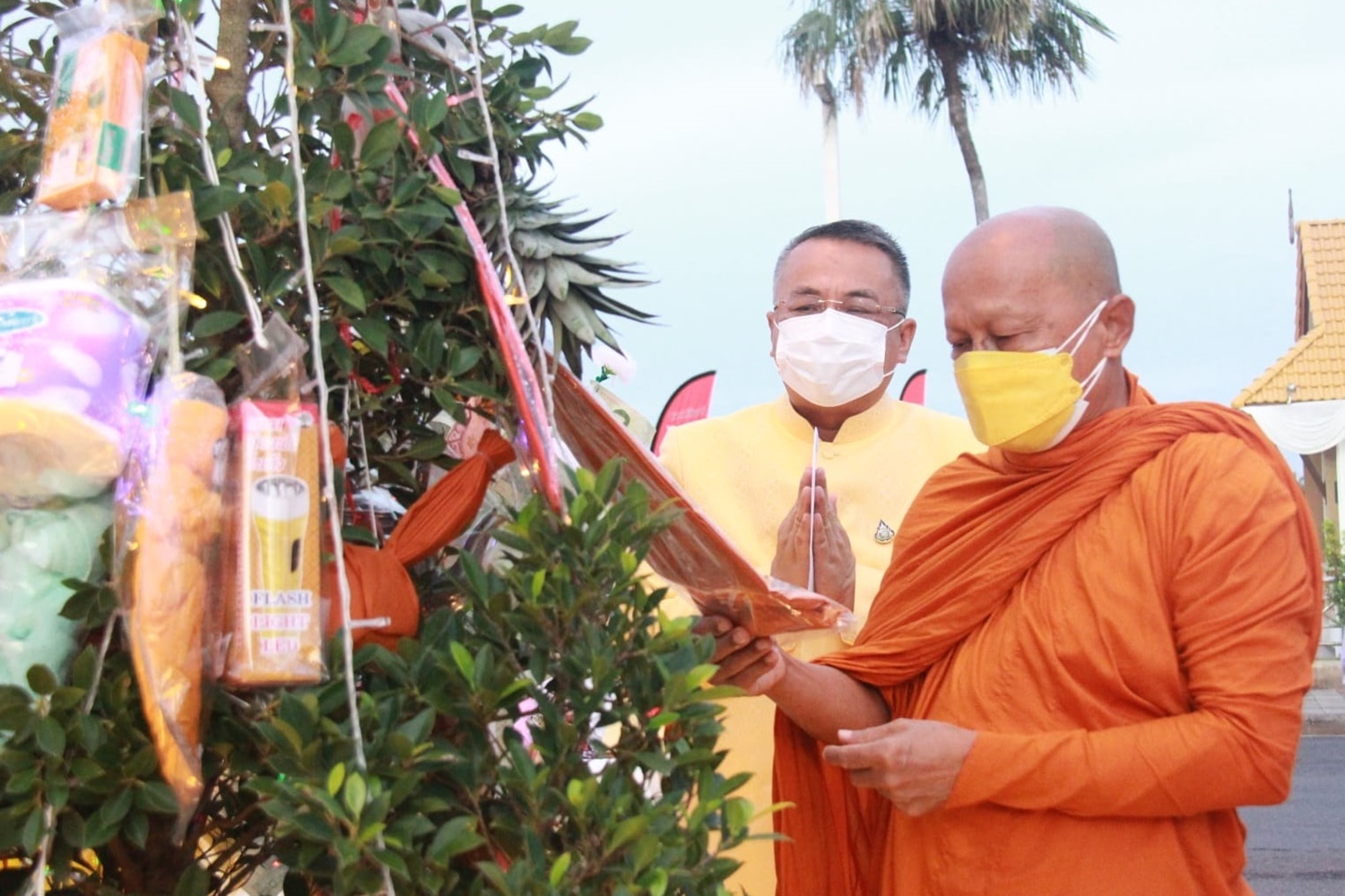 สุราษฎร์ธานี-ผู้ว่าฯสุราษฎร์ฯ ชักพุ่มเมือง วันออกพรรษา พระสงฆ์สวดเจริญพระพุทธมนต์สวดไล่โควิด-19